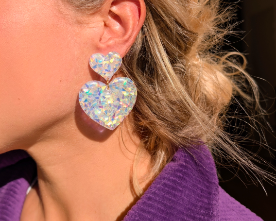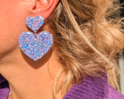 Boucles d'oreilles légères, fabriquées en résine, assemblées avec des supports en acier inoxydable et hypoallergénique. Créations uniques et artisanales faites à la main dans l'ouest de la France. Toutes mes créations en résine sont réalisées à base de véritables fleurs séchées, pépites de pierres/coquillages et paillettes.