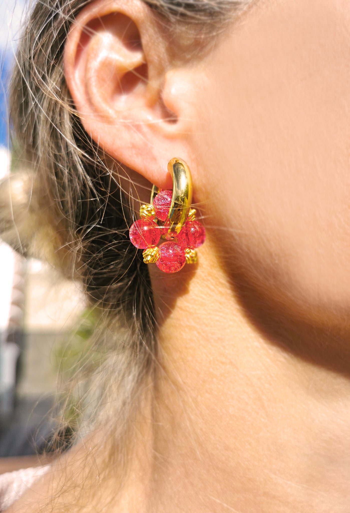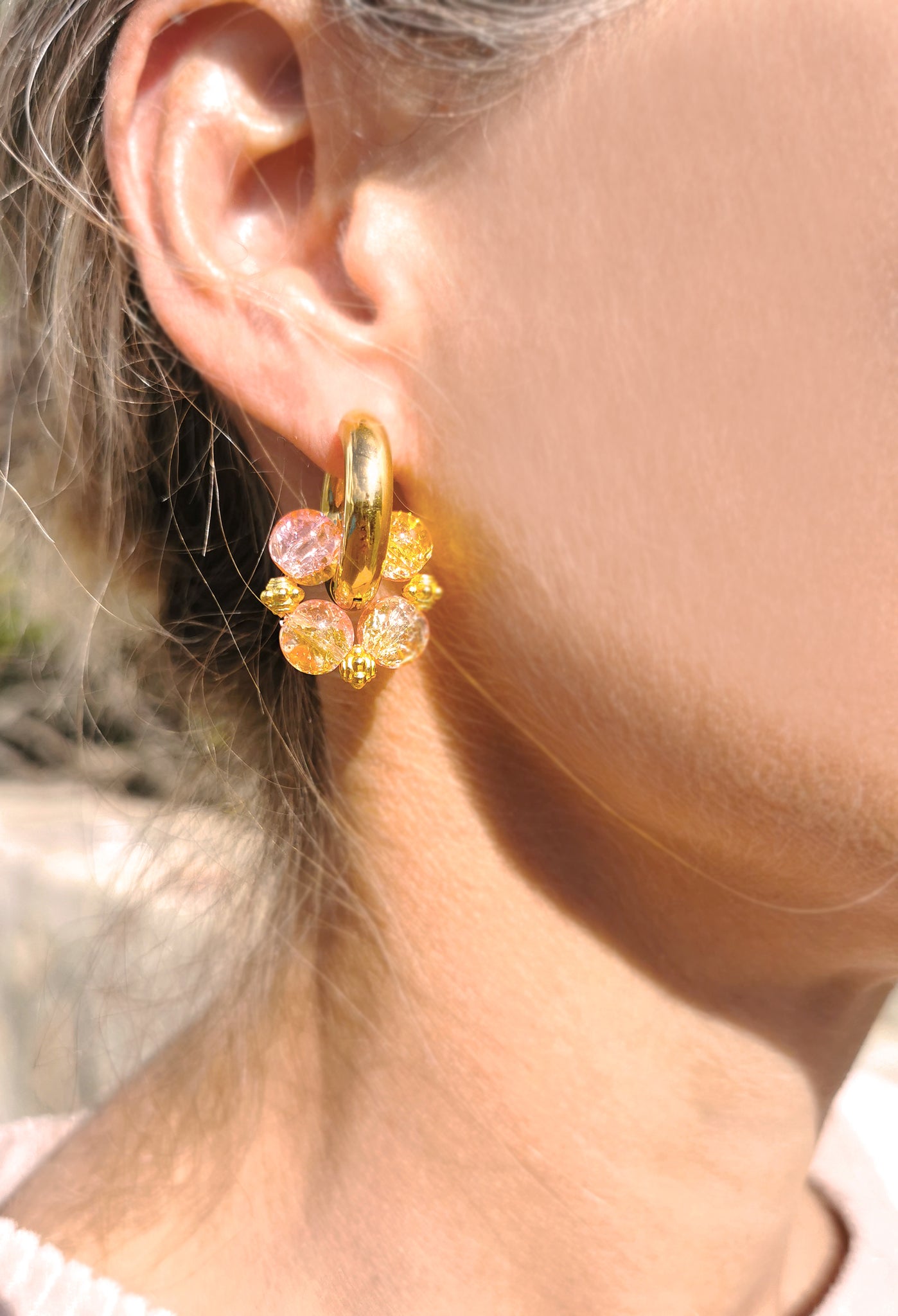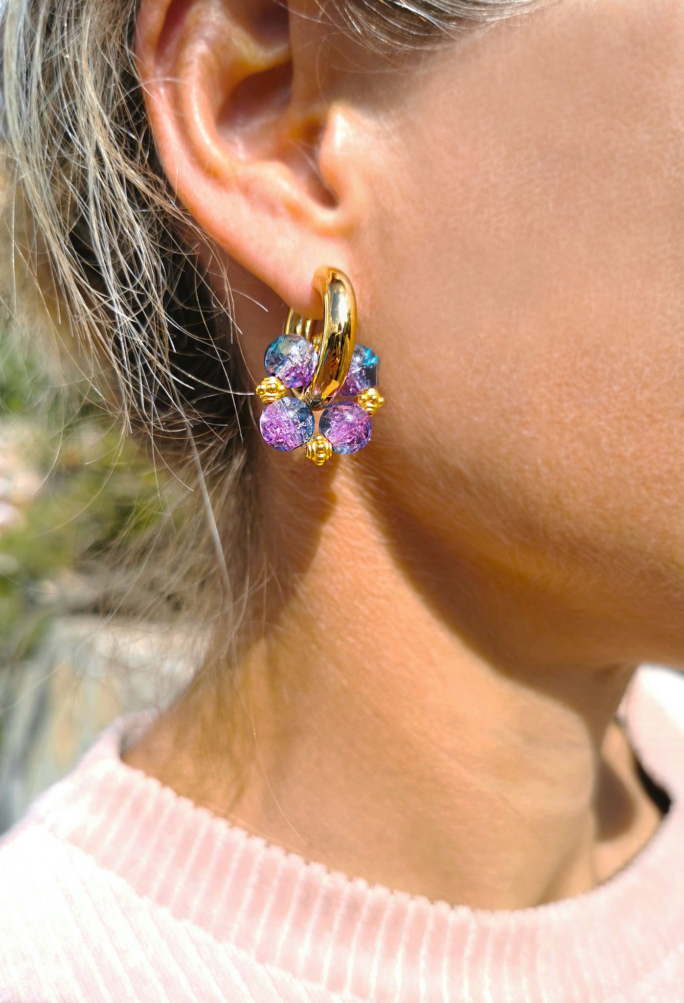 Paire de boucles d'oreilles avec des perles en acrylique avec effet de couleurs "tie & dye"; et dorée en acier inoxydable.