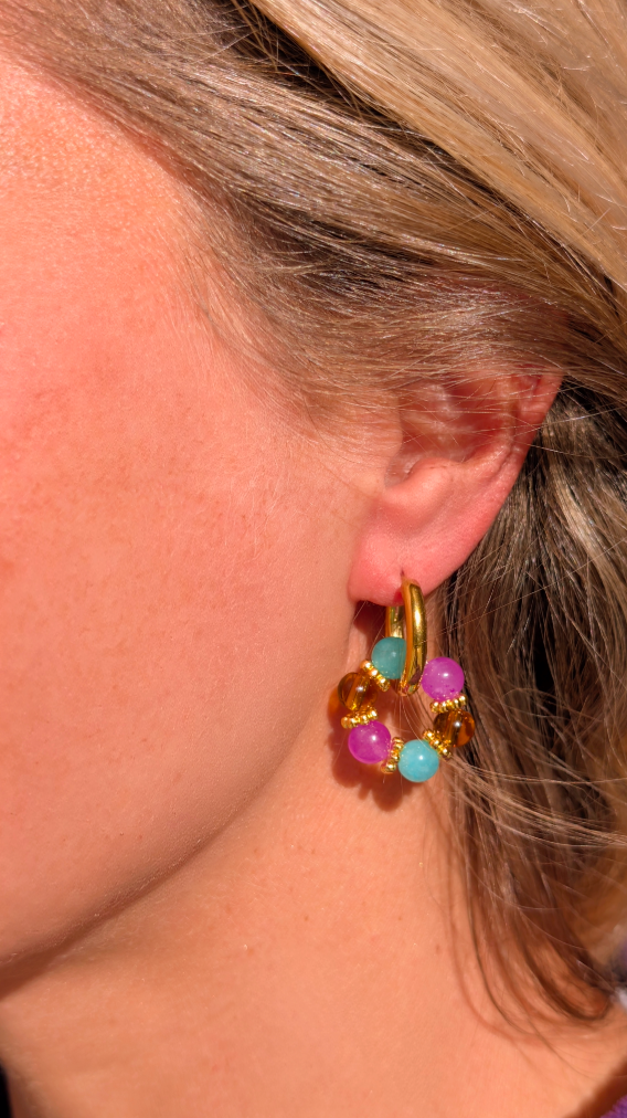 Créations uniques et artisanales faites à la main dans l'ouest de la France. Boucles d'oreilles légères, assemblées avec des anneaux, des créoles et des clous d'oreilles en acier inoxydable/hypoallergénique.
