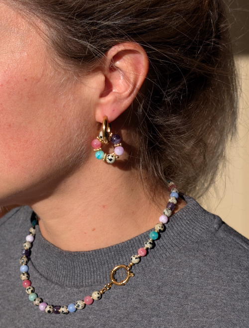 Les effets de couleurs peuvent varier un petit peu entre le rendu d'une photo et la réalité : la composition/forme/couleur peuvent varier un peu d'une pièce à l'autre. Chaque boucle est unique et est confectionnée manuellement, il m'est impossible d'uniformiser toutes les boucles.
