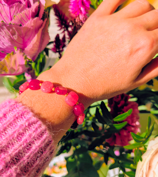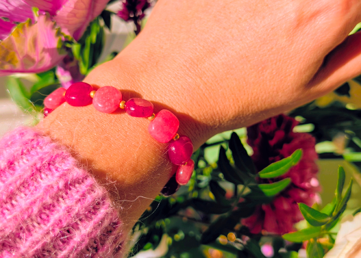 Bracelet léger, confectionné à partir de calcédoine rose et framboise.