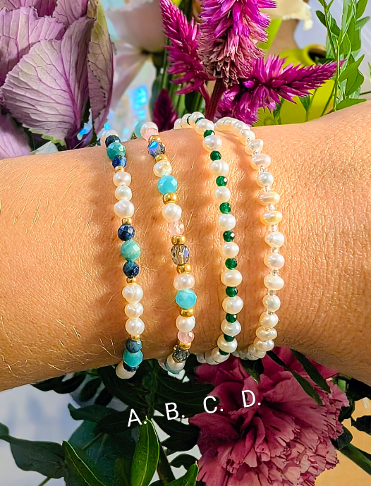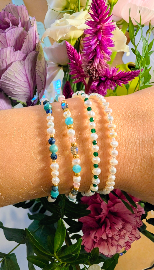 Bracelet léger, confectionné à partir de calcédoine et de perles d'eau douce.