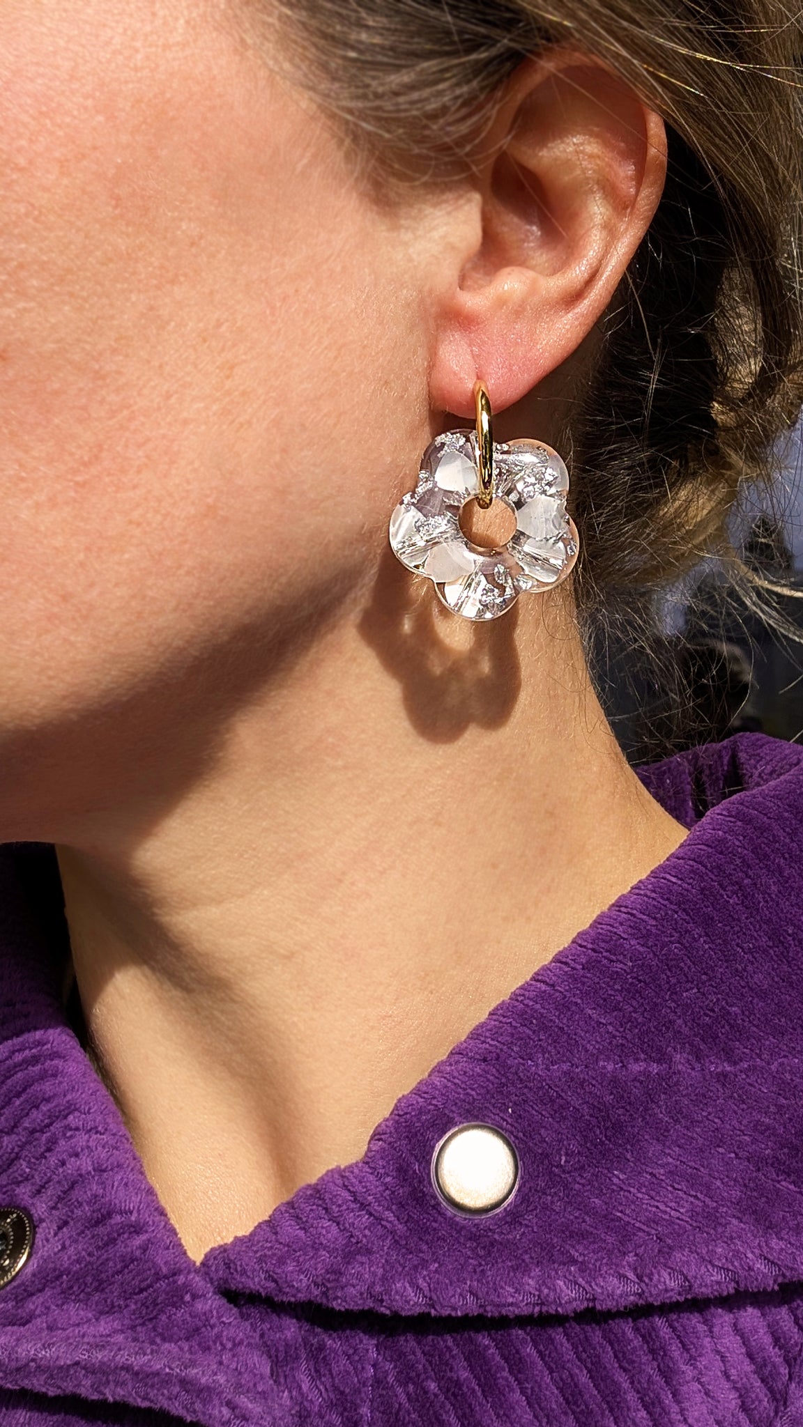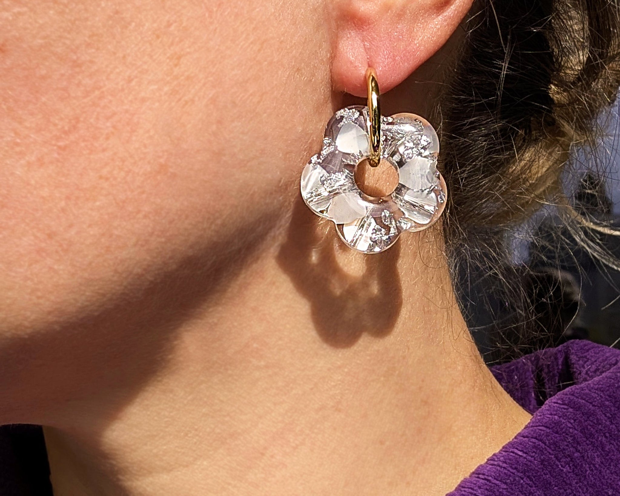 Créations uniques et artisanales faites à la main dans l'ouest de la France. Toutes mes créations en résine sont réalisées à base de véritables fleurs séchées, pépites de pierres/coquillages et paillettes. Boucles d'oreilles légères, fabriquées en résine, assemblées avec des anneaux, des créoles et des clous d'oreilles en acier inoxydable/hypoallergénique.